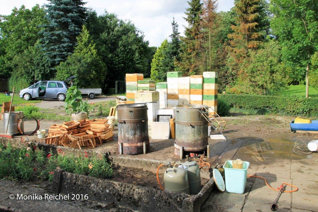 Die Referentin, Monika Reichel, hat beim Bienenzuchtberater Guido Eich in Niedersachsen die offene Kunstschwarmsanierung mitgemacht und die Ausbildung zur Bienensachverständigen absolviert.
