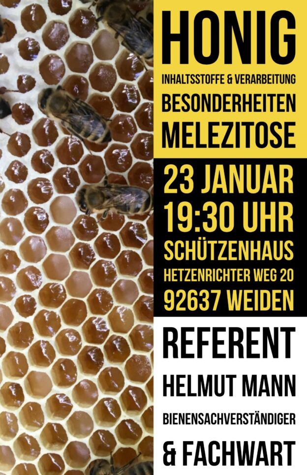 Am kommenden Freitag, den 23.01.2026, findet unsere erste Monatversammlung des neuen Jahres wie gewohnt in der Dotscheria Schützenhaus statt. Diesmal haben wir Imkerkollege und Bienensachverständigen Helmut Mann als Referenten zu Gast. Thema seines Vortrags ist Honig – Inhaltsstoffe, Verwendung und Besonderheiten wie Melezitose. Ein spannendes Thema sowohl für angehende als auch erfahrene Imker, denn die Natur hält immer neue Überraschungen für uns bereit.
